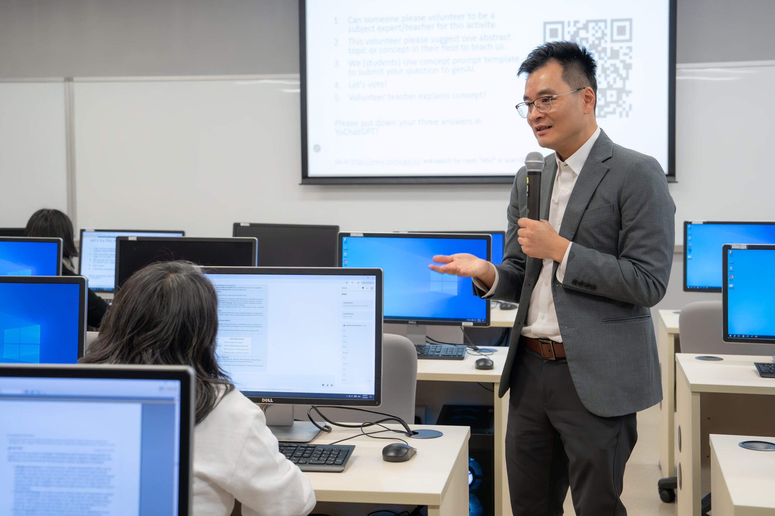 The session introduced YoChatGPT!, a free-to-use collaborative GenAI platform, and demonstrated how AI can move beyond one-to-one interactions to support multiplayer dialogue, inquiry-based quests, and shared AI feedback. Through live demonstrations and examples across STEM, humanities, and service-learning contexts, participants explored how collaborative GenAI can foster teamwork, critical thinking, and ethical AI use.