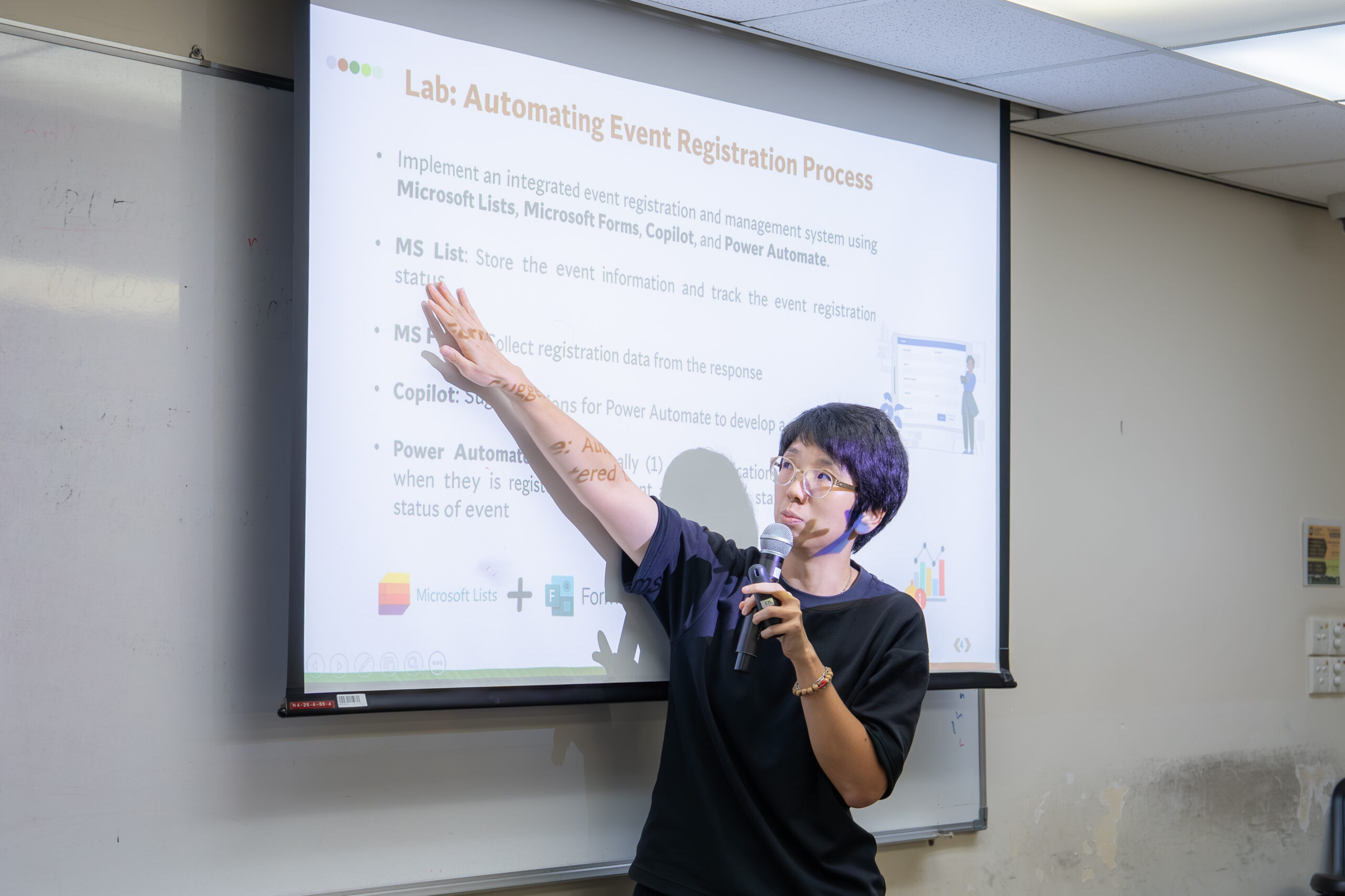 Led by Dr Valerie Tang (SCM) and co-facilitated by Mr Kelvin Wan (Digital Learning Section), the 90-minute hands-on workshop introduced practical ways to streamline repetitive tasks using familiar Microsoft 365 applications. Participants learned to:
