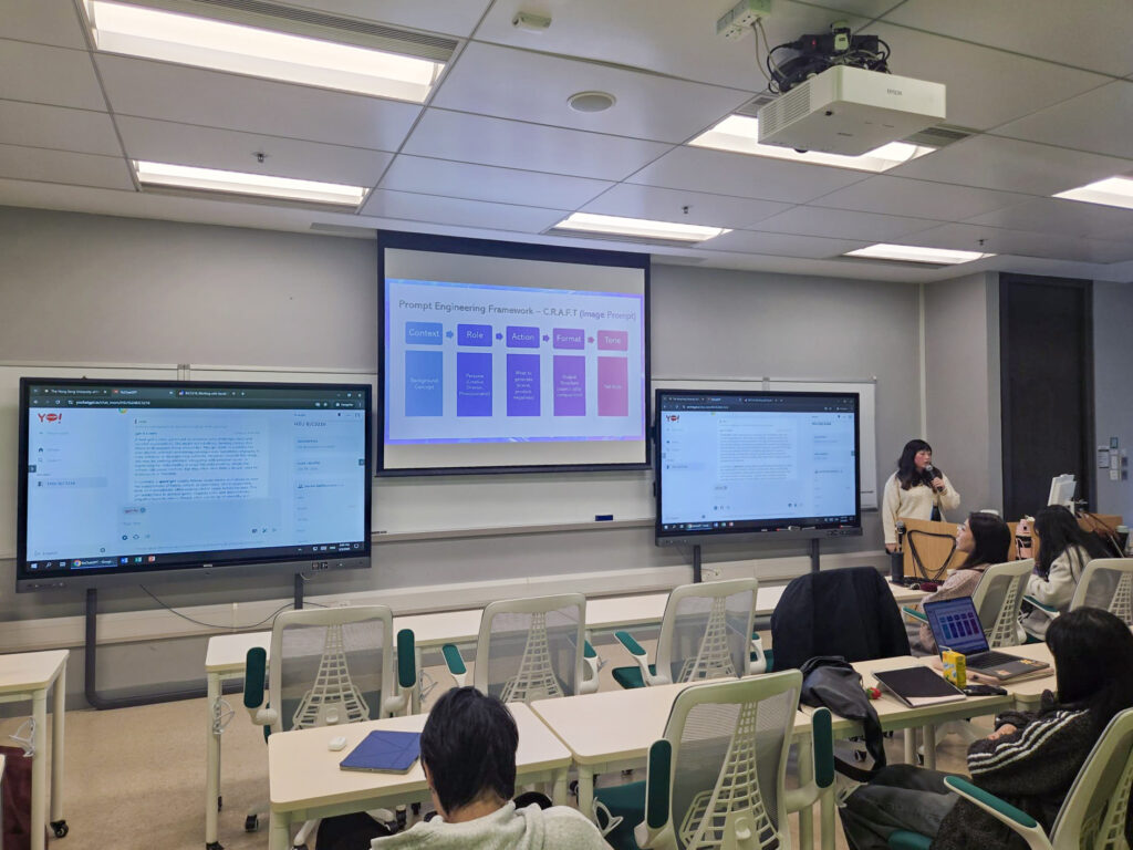 A two-hour interactive workshop on “Working with Generative AI for Communication” was successfully delivered for students of BJC3216 – Communication and Artificial Intelligence, taught by Dr Janice Wong (School of Communication).